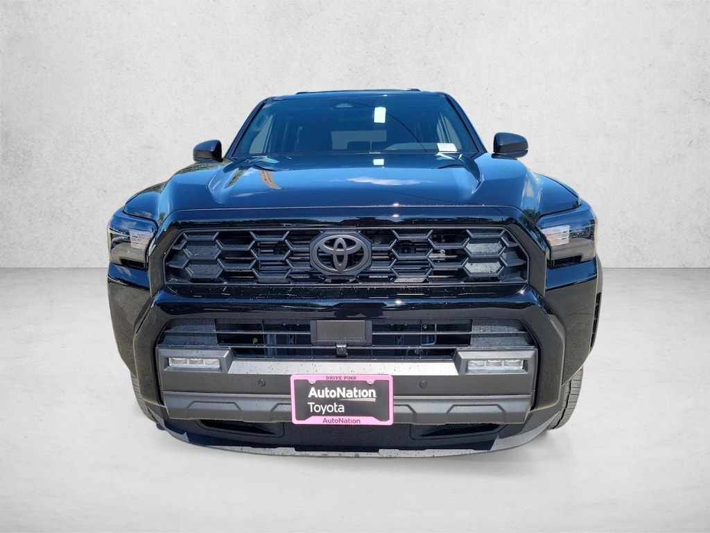• Black honeycomb-style grille, mirror caps, door handles, and overfenders; color-keyed rear spoiler; black "trd off road" and "4runner" badges.