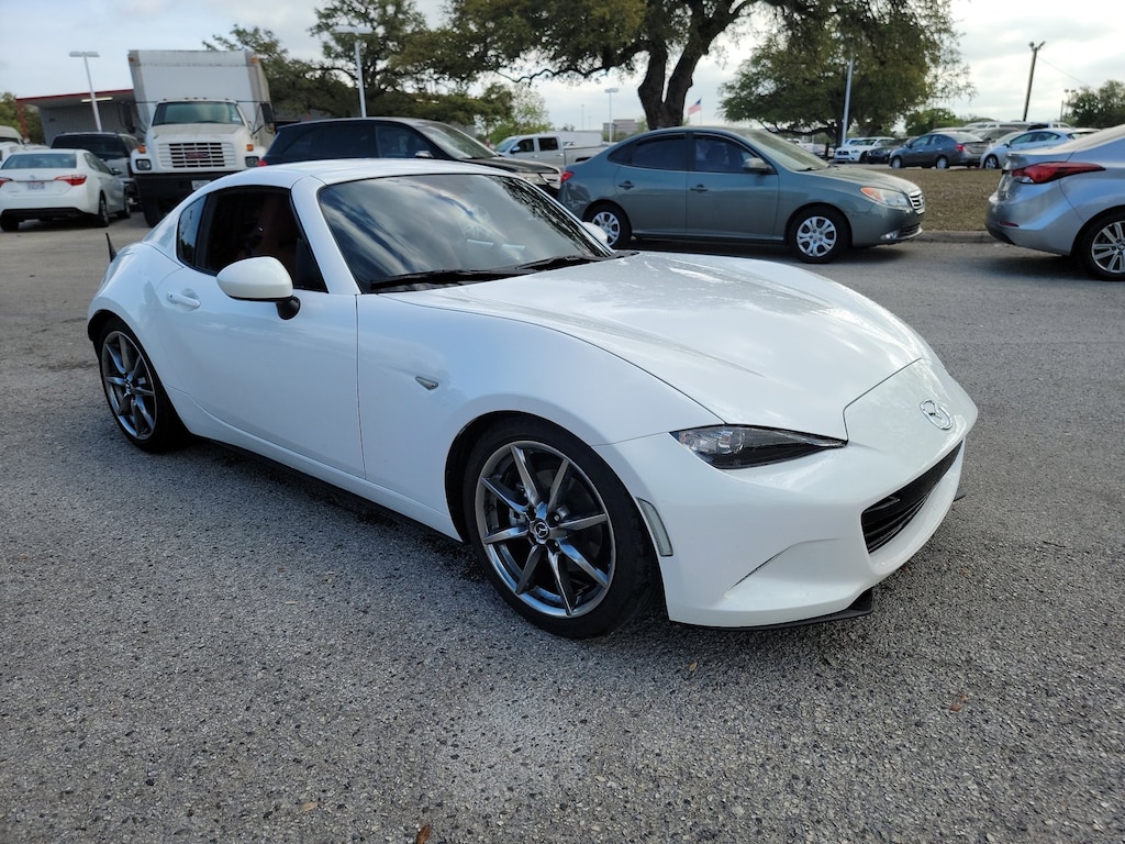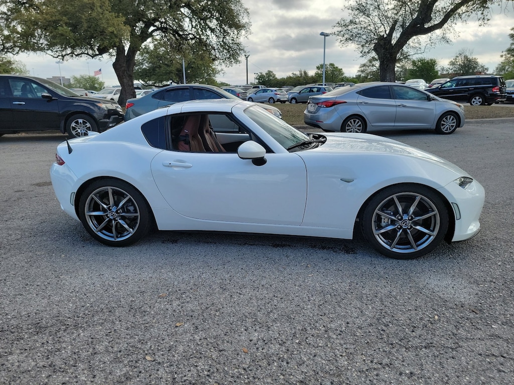This 2023 Mazda MX-5 Miata RF Grand Touring is offered to you for sale by AutoNation Toyota South Austin. This sporty Mazda MX-5 Miata RF convertible leads the class in performance and refinement. You don't have to sacrifice style or comfort with this fuel-efficient Mazda MX-5 Miata RF.Gently driven doesn't even begin to explain how lovingly cared for this ultra-low mileage vehicle has been. You've found the one you've been looking for. Your dream car.