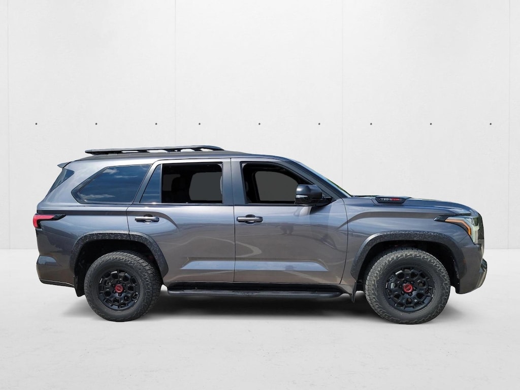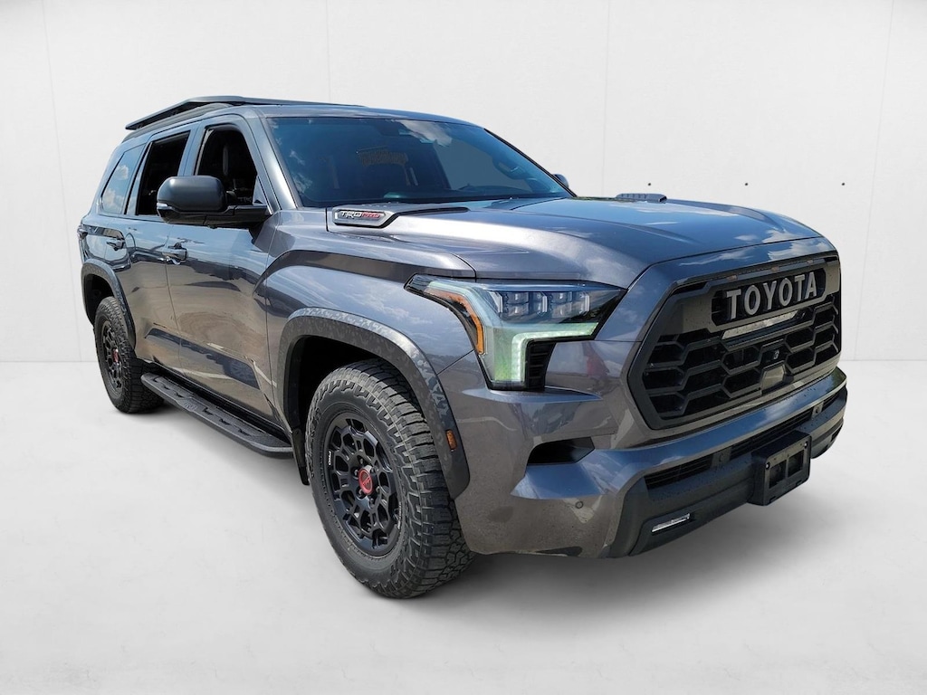 AutoNation Toyota South Austin is pleased to be currently offering this 2024 Toyota Sequoia TRD Pro with 20,268mi. This Toyota includes: POWER TILT/SLIDE PANORAMIC ROOF W/POWER SUNSHADE Panoramic Roof Generic Sun/Moonroof Sun/Moonroof BLACK, TRD PRO SOFTEX SEAT TRIM Premium Synthetic Seats *Note - For third party subscriptions or services, please contact the dealer for more information.* This SUV is a superb example of what a tough, work focused vehicle should be. Exceptional towing, acceleration and torque will help you get the job done. Put performance, safety, beauty, sophistication and all the right amenities into a car, and here it is! Now you can own luxury without the luxury price tag! This 4WD-equipped vehicle will handle majestically on any terrain and in any weather condition your may find yourself in. The benefits of driving an Four Wheel Drive vehicle, such as this ToyotaSequoia TRD Pro, include superior acceleration, improved steering, and increased traction and stability.